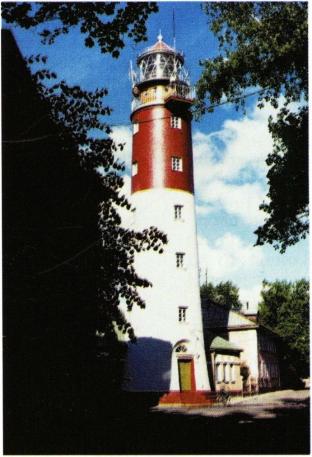 Установлен у самого берега косы, отделяющей Гданьский залив от бухты Приморская, в юго-восточной части Балтийского моря, обеспечивает безопасный подход к порту Балтийск.