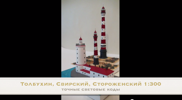 Сюжет НТВ Санкт-Петербург о выставке "Маяки русского севера". В кадре экспозиция проекта "Маячник. Виртуальный музей маяков мира" диорама Толбухина в масштабе 1:200, витрина с включенными моделями маяков с точным световым кодом: Толбухин, Свирский, Стороженский в масштабе 1:300. Наша экспозиция пробудет на выставке до 1 марта. После вы сможете увидеть, подаренную от нашего проекта музею ледокола Красин модель маяка Толбухин с точным световым кодом в масштабе 1:300.http://www.ntv.ru/novosti/1338678/