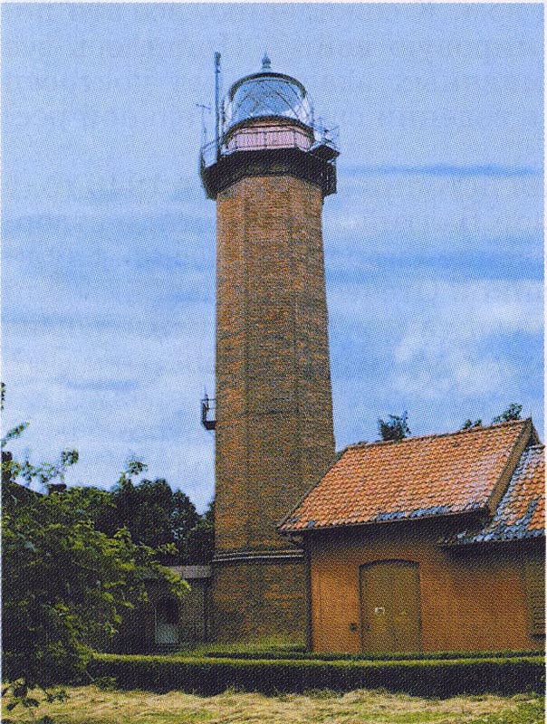 До 1945 года мыс принадлежал Восточной Пруссии. Известно, что маяк несколько раз перестраивал­ся немецкими специалистами. В 1820-х годах вместо костра в канфоре на мысе устроили вышку, на вершину которой по ночам поднимали фонарь с тремя параболическими рефлекторами. В таком виде маяк просуществовал до 1846 года, когда на 33-метровой высоте мыса возвели красную восьмиугольную башню высотой 30,5 м с чер­ной куполообразной крышей и рядом красный кирпичный дом. Маяк светил белым постоянным огнем.