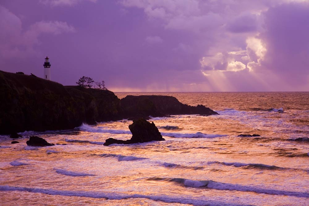 Маяк Яквина, штат Орегон, США. Был построен в 1873 году, до 1933 года работал на керосине и смальцевом топливе. Сейчас полностью автоматизирован и обустроен, а раньше его смотритель мог попасть на «большую землю» только во время отлива.